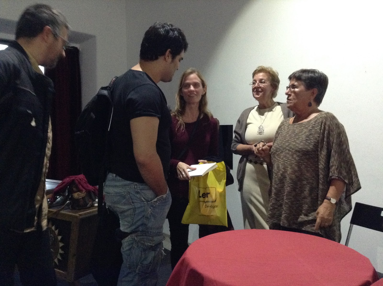 Três anos depois, a Maria de Fátima Santos conseguiu reunir quatro dos premiados dos "Novos Talentos FNAC 2012, no lançamento do seu livro  Só mais um abraço, numa cerimónia muito bonita na livraria Ler Devagar com muitos sorrisos, muitas fotos e mais rugas. Faltou o Pedro Amaral. Para a próxima...